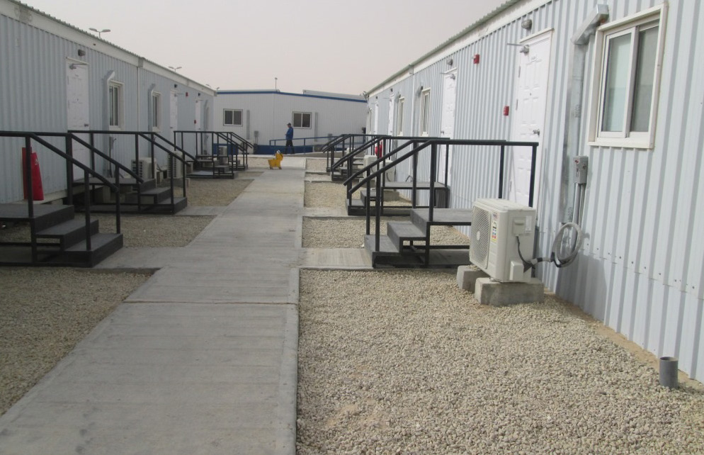 This project involved construction of camp and support facilities for Tecnicas Reunidas, covering a BUA of 10,500 m2. The scope included site preparation, fence and gates, asphalt and walkways, furniture and HVAC, and complete utilities including water networks, firefighting networks, power networks, fire alarm systems, piping, tanks, cables, lighting, generators, pumps, and others. Recreational and dining facilities, a gymnasium, and sports facilities were also included in this turnkey project.
