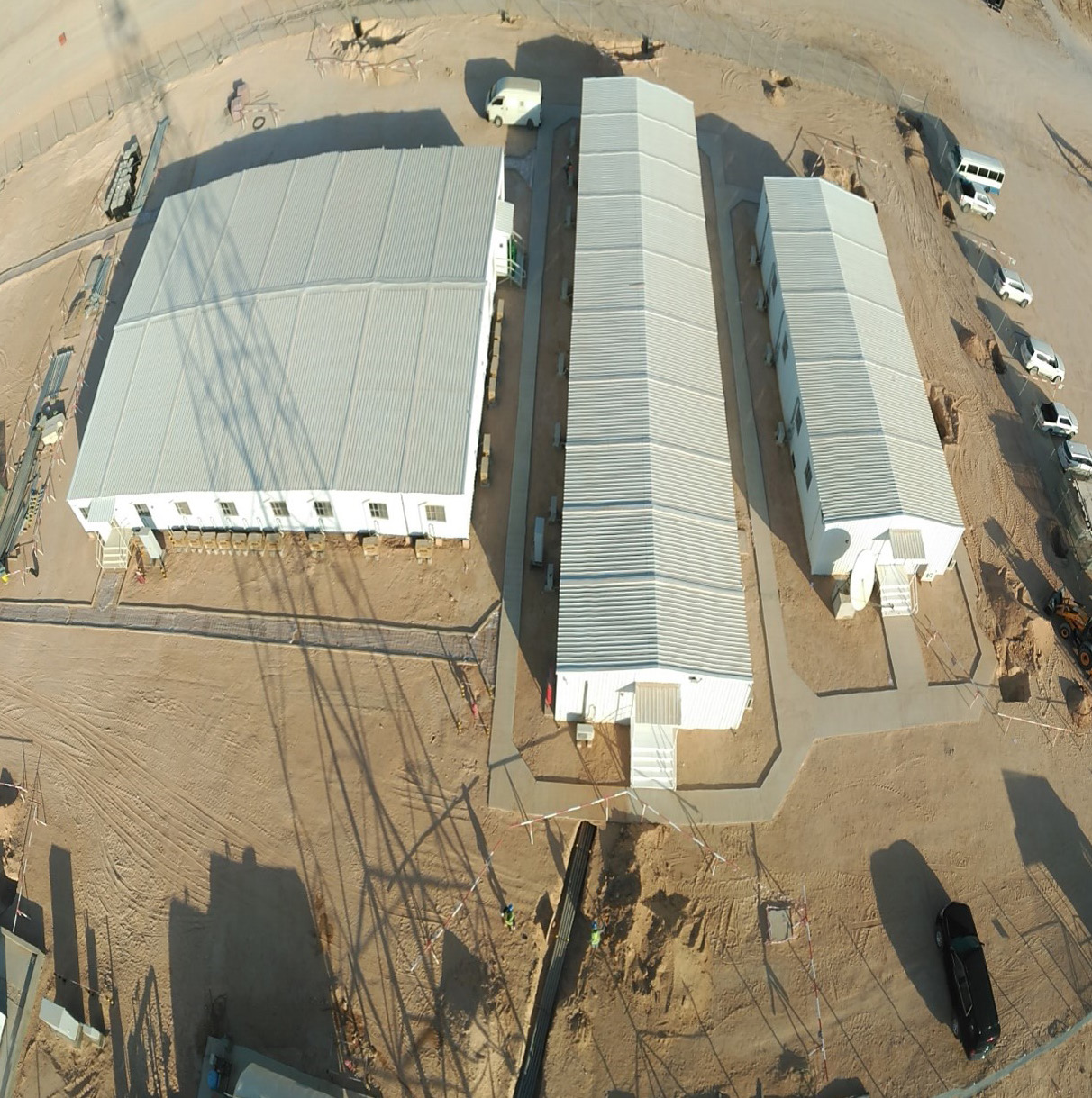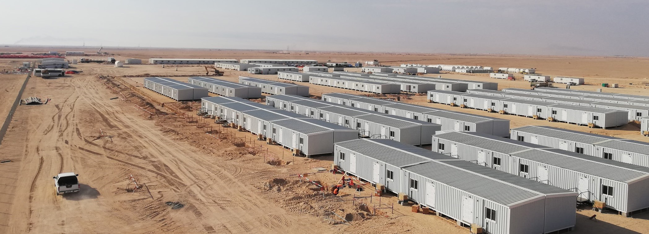 Construction of satellite offices for Tecnicas Reunidas and Saudi Aramco, covering a total area of 12,000 m2 in 17 different Locations. The project included site preparation, installation of fences and gates, walkways and furniture, and HVAC systems. The offices were equipped with complete utility systems, including water networks, firefighting networks, power networks, fire alarm systems, piping, tanks, cables, lighting, generators, pumps and other necessary equipment. In addition, the offices were equipped with recreational and dining facilities, a gymnasium and sports facilities, making it a complete turn-key project.