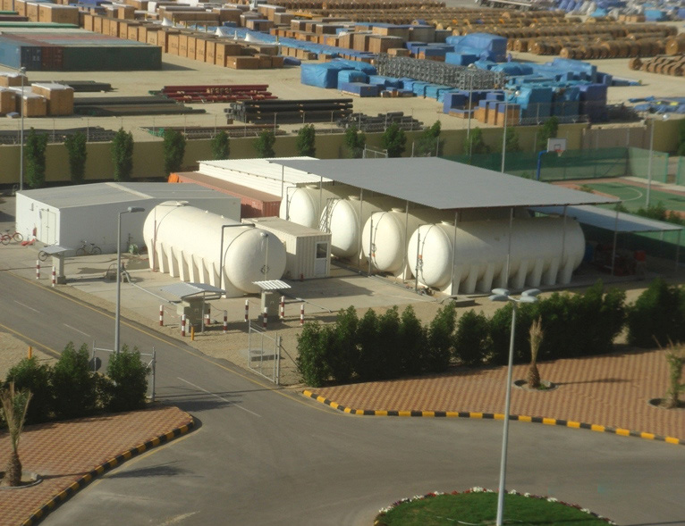 Scope of work: Construction of site office and laydown area, including prefabricated office buildings of 35,000 sqm, 7 steel structure warehouses with a total area of 8,500 sqm, gantry crane supply and installation with civil works, 4,500 linear meters of chain link fence, underground utilities including sewer, water, fire and electrical networks, asphalt works covering 9,500 sqm, and installation of furniture and air conditioning.